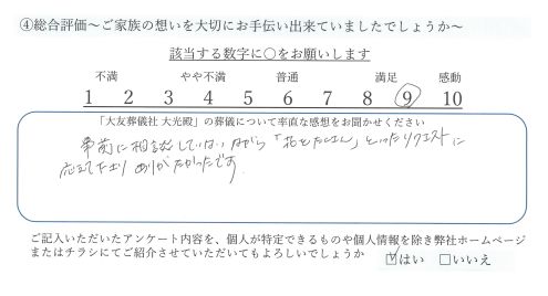 ・「大友葬儀社 大光殿」の葬儀について率直な感想をお聞かせください