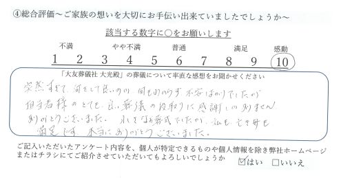 ・「大友葬儀社 大光殿」の葬儀について率直な感想をお聞かせください