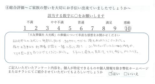 ・「大友葬儀社 大光殿」の葬儀について率直な感想をお聞かせください